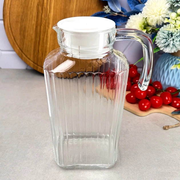 Скляний глечик 1.7 л з білою кришкою Люмінарк Quadro