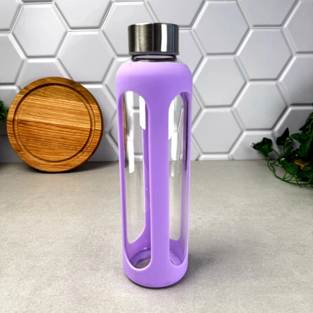 Скляна пляшка для напоїв з металевою кришкою 0.55 л Бузкова Kamille
