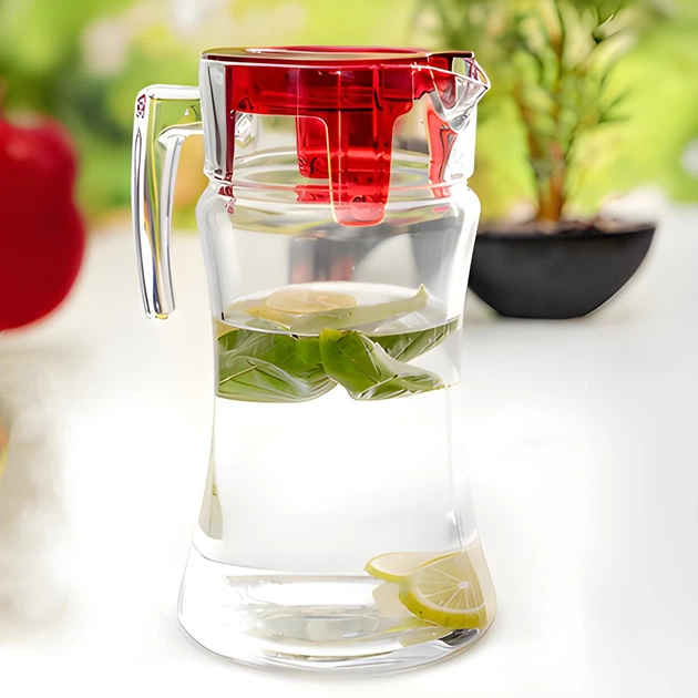 Скляний глечик з червоною кришкою 1.4 л Pasabahce Азур