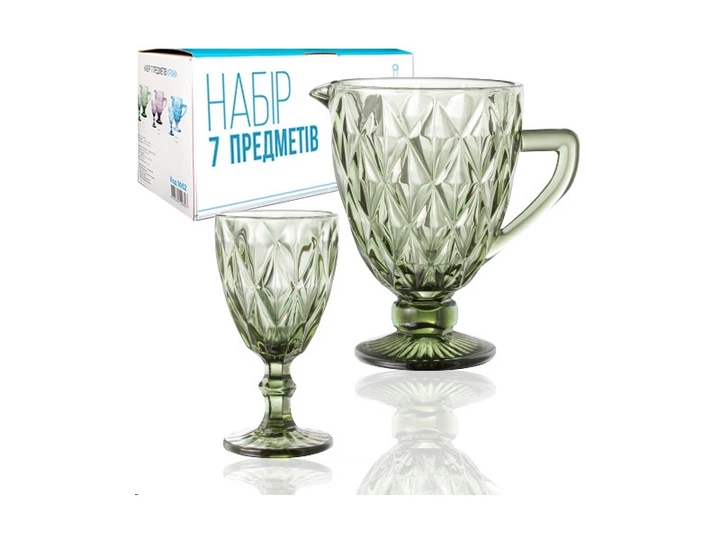 Набір скляний глечик і 6 склянок сірий (121-HP542)