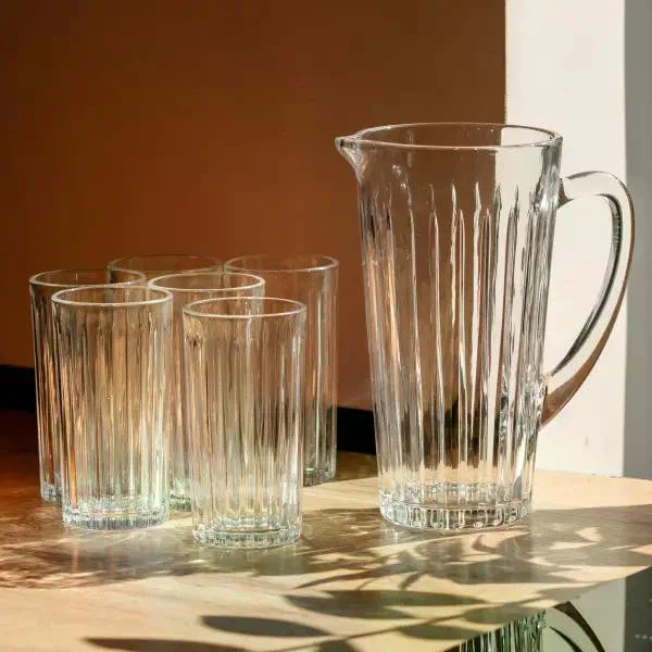 Набір глечик 1,2 літра та 6 склянок по 320 мл прозорий з товстого скла для різноманітних напоїв