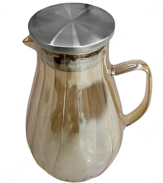Глечик скляний з кришкою чеканий корпус 1.6л