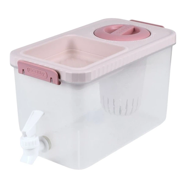 Лимонадник пластиковий Healthy R93432 4 л з ємністю для льоду Прозорий із рожевим