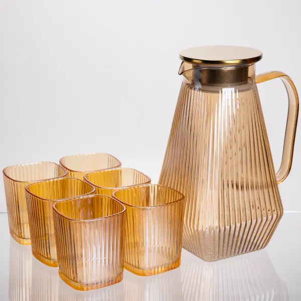 Набір глечик зі склянками 1,8/0,2 л рифлений, бурштиновий(HP-19-39)(WB)