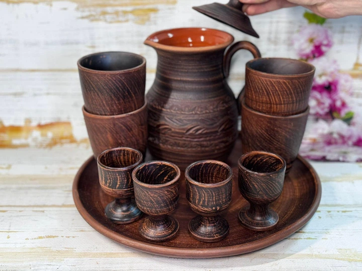 Набір посуду "Для кумів" 4 персони 10 предметів з червоної глини