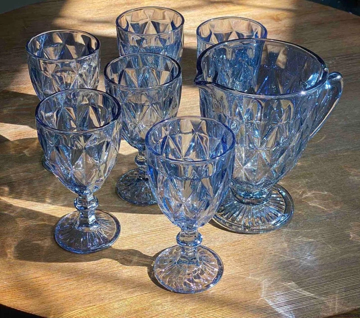 Набір для напитків Elodia "Грані" 6 бокалів 320мл і глечик 1.1л, кобальтове скло (177395)