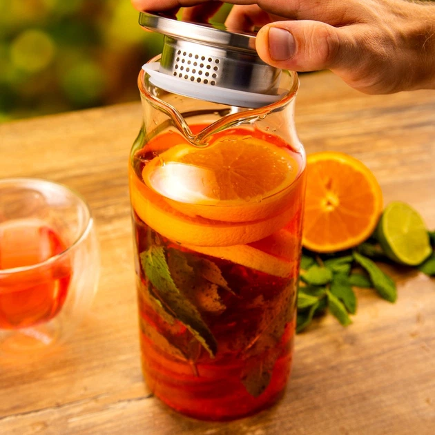 Високий скляний глечик з металевим фільтром Ardesto 1.2л