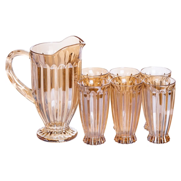 Набір глечик 1 л зі склянками 6 (шт) по 300 мл для напоїв, лимонадів, соку, води, мохіто Прозорий HP-19-2080GLD