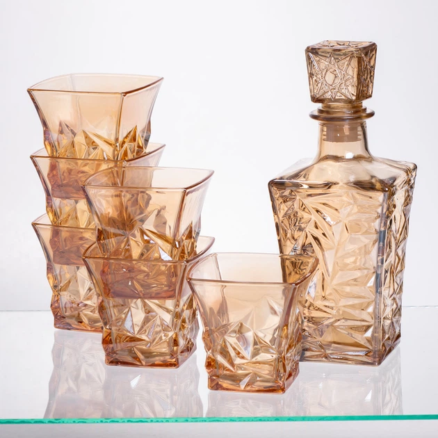 Набір для напоїв графин та 6 склянок для напоїв із товстого скла коричневий