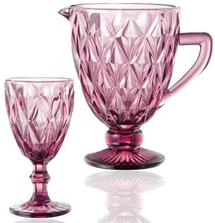 Набір для напитків Elodia "Грані" 6 бокалів 320мл і глечик 1.1л, розове скло (109811)