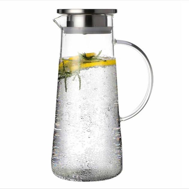 Графін скляний з металевою пробкою та ручкою 1200мл (1.2л) Kamille для лимонаду, чаю та води