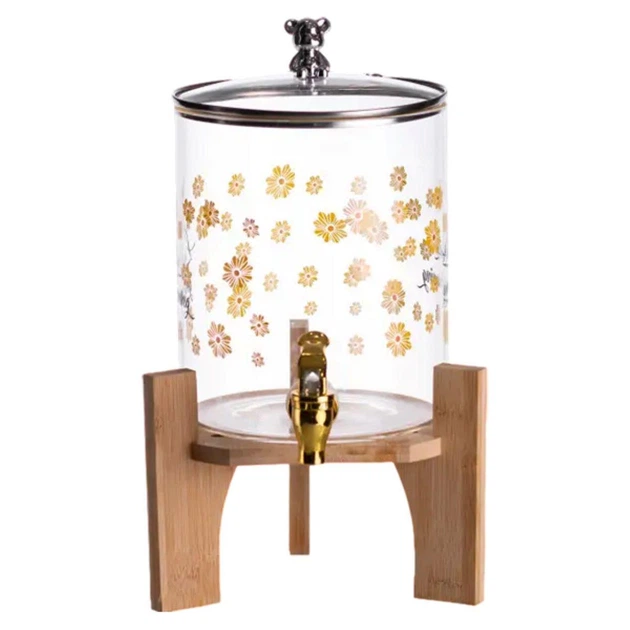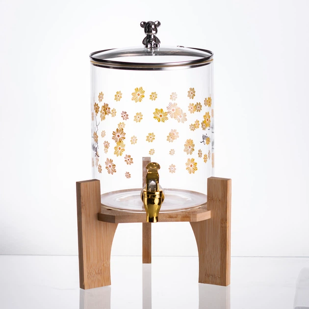 Лимонадниця з краном на дерев'яній підставці 3.6 л скляна лимонадниця диспенсер для напоїв HP-34-17