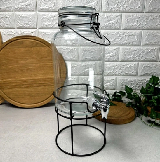 Скляний графин банку глечик для лимонаду соку вина освіжаючих напоїв на підставці з краником 4 л (557415-Т)
