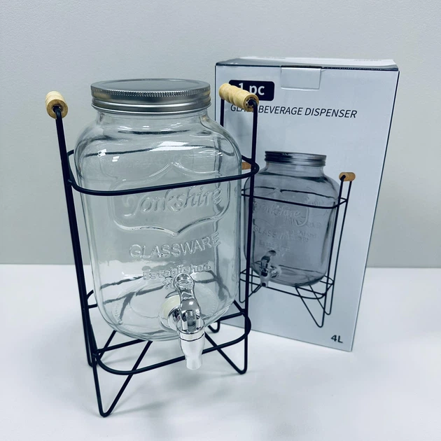 Лимонадник скляний для напоїв з металевою кришкою на підставці 4 л S&T 3423