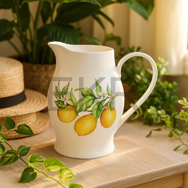 Порцеляновий глечик 2.8 л Сицилійський лимон - глечик з ручкою для води, соку, компоту (K117)