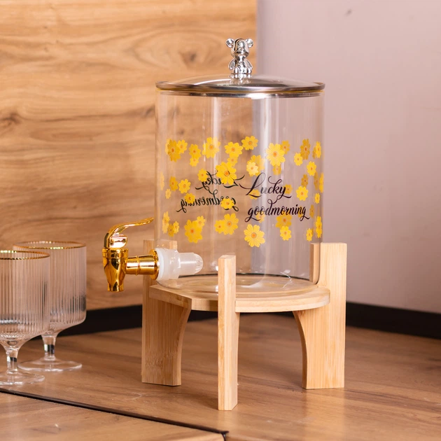 Лимонадниця з краном на дерев'яній підставці 3.6 л скляна лимонадниця диспенсер для напоїв