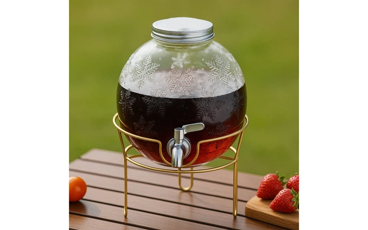 Склянний диспенсер для напоїв на металевій підставці 6 л ViO