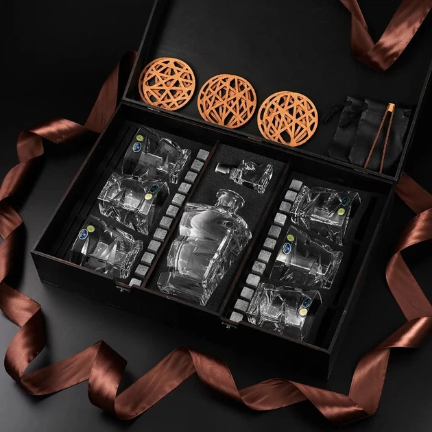 Набір камені для віскі 24шт Whiskey Stones + 6 склянок кришталь Bohemia Zig-Zag 300 мл + графин 750 мл