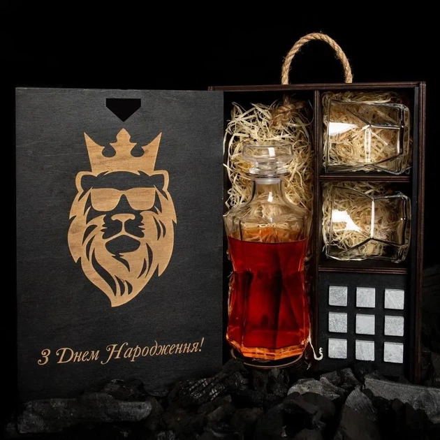 Подарунковий набір для віскі, декантер та дві склянки, З Днем народження, AUTO COMFORT