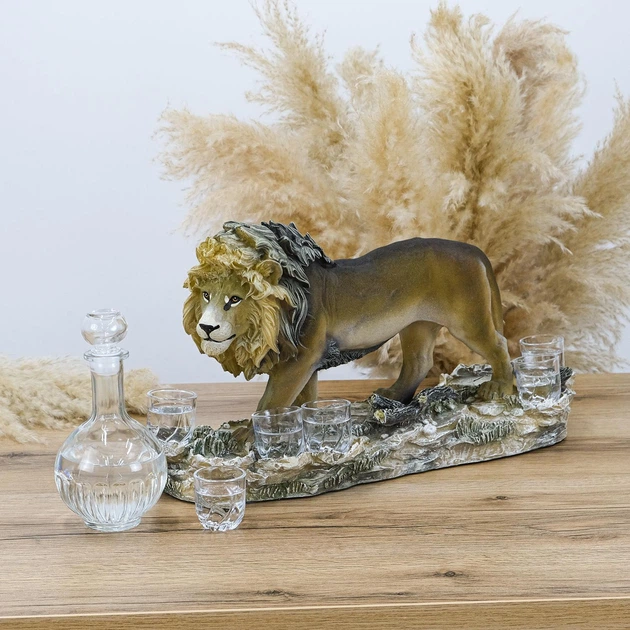 Коньячний набір Лев зі скляним графином та стопками на підставці з полістоуну