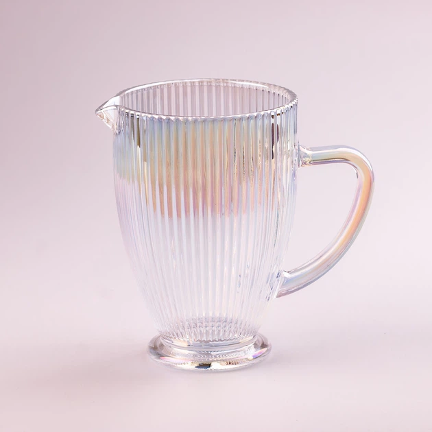 Глек для компоту 1.2 (л) лимонаду, мохіто, сангрії прозорий ребристий фігурний скляний 18.2 (см) Сірий