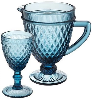 Набір для напоїв Elodia "Аргайл" 6 бокалів 340мл і глечик 1.15л, кобальтове скло (109816)