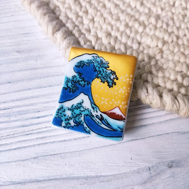 Керамічна підставка для паличок у японському стилі Хвиля на тлі Величної Фудзі