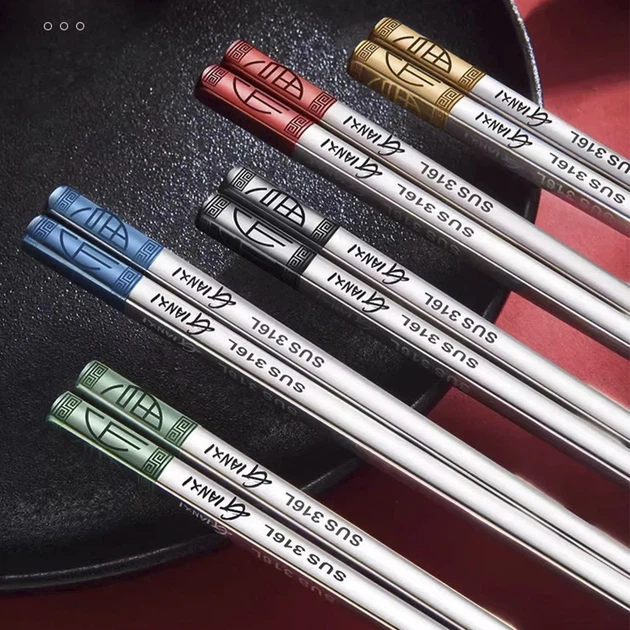 Палички для їжі сталеві кольорові у блістері набір 5 пар Кольорові