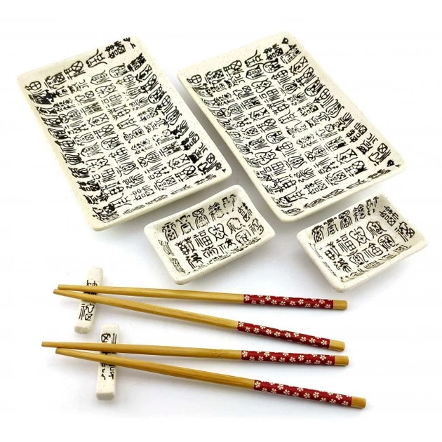 Сервіз для суші на 2 персони Ієрогліфи на білому тлі 28х28,3х3,5 см (34281K)