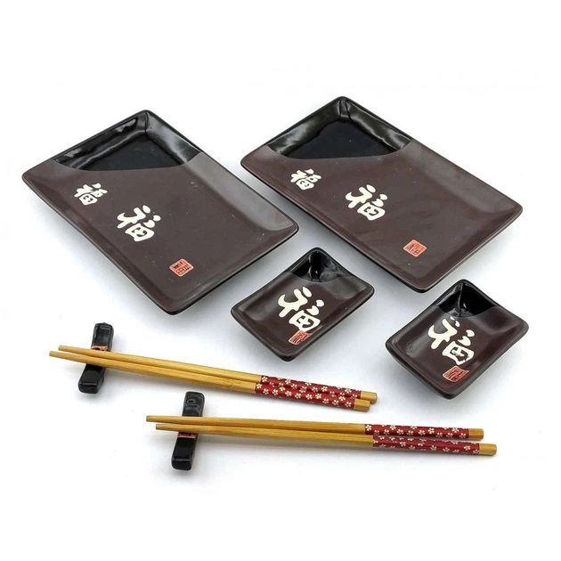 Сервіз для суші None Ієрогліфи на шоколадному тлі 2 особи 28х28,3х3,5 см (DN34281F)