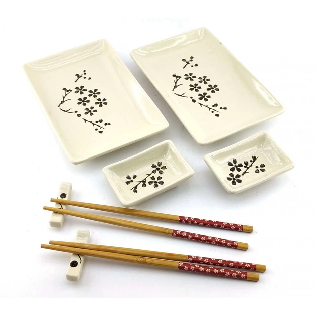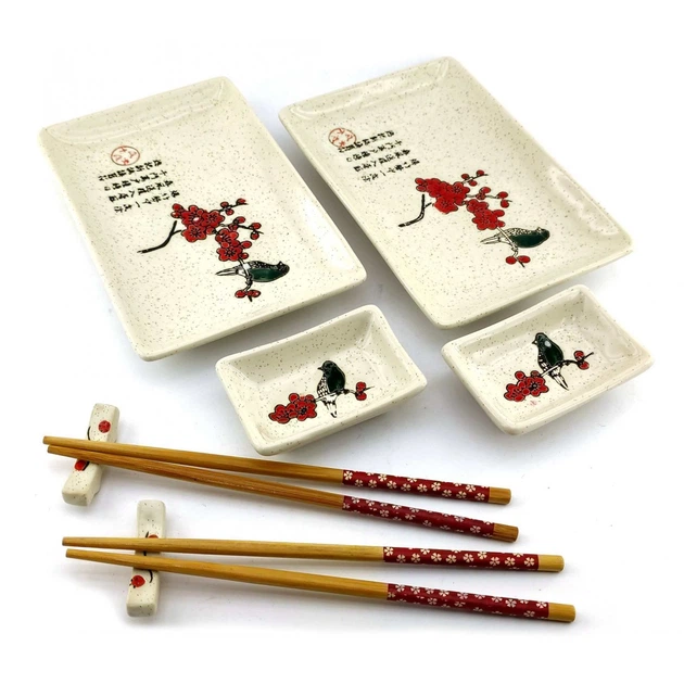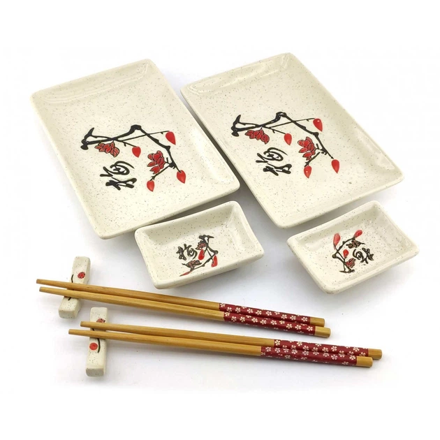 Сервіз для суші None Квіти сакури з ієрогліфом на червоному тлі 2 персони 28х28, 3х3, 5 см (DN34281V)