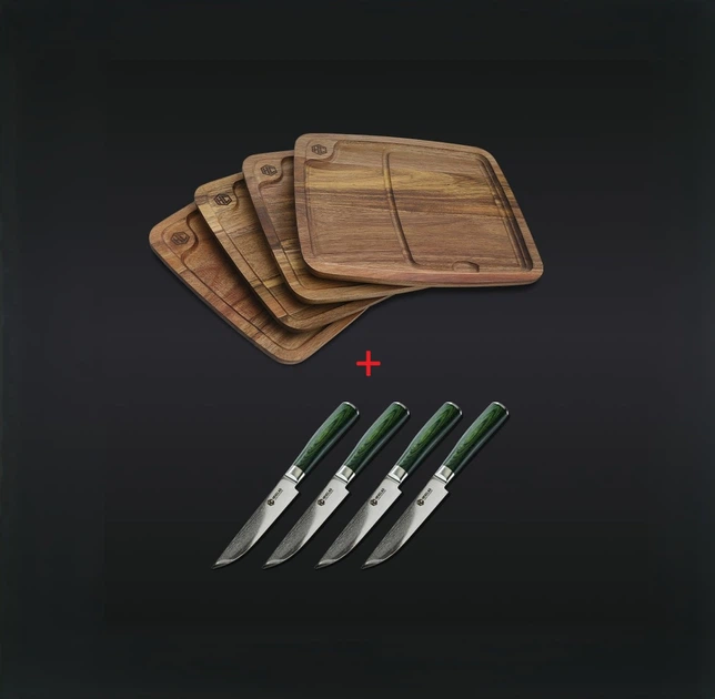 HexClad Набір ножів та дерев'яних тарілоки бістеки для стейку 8шт
