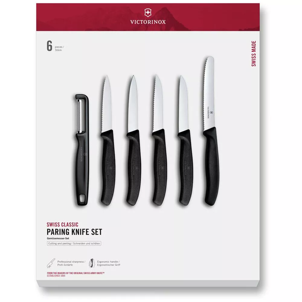 Набір для чистки овочів 6 шт Victorinox Swiss Classic Paring Set 5 ножів, овочечистка, чорний, подарункова коробка (6.7113.6