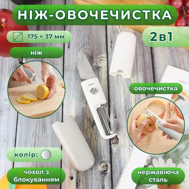 Ніж-овочечистка SteilPeel 2в1, чохол з блокуванням, сіро-білий, 175 37 мм