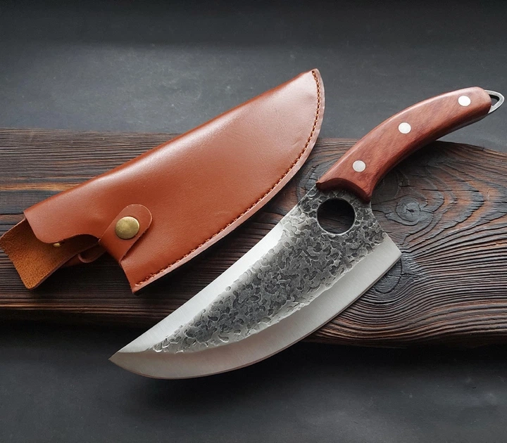 Кований кухонний ніж з нержавіючої сталі ніж для м'яса Ніж для обвалки з отвором для пальця + чохол Чорний