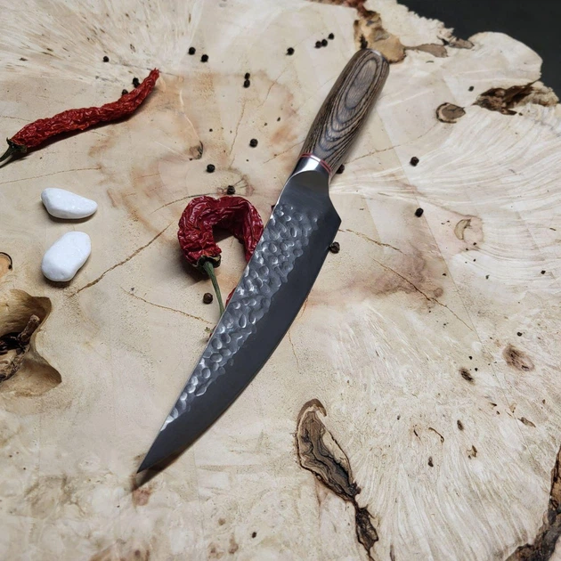 Кухонний обробний універсальний ніж слайсер 27 см із кованої неіржавкої сталі, ручка з дерева