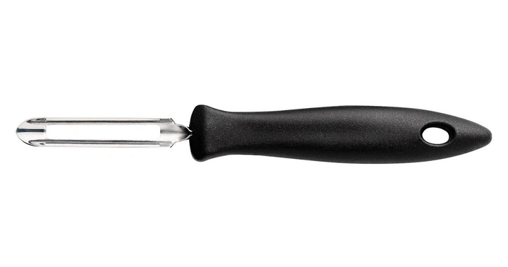 Овочечистка вертикальна Fiskars Essential, з рухомим лезом, 18.4см, нержавіюча сталь, пластик, чорний