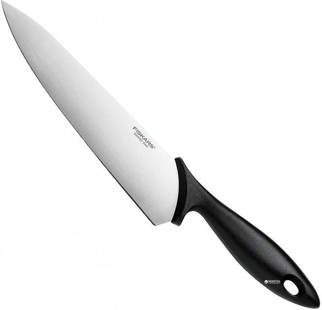 Кухонний ніж кухарський Fiskars Essential, 21.4см, нержавіюча сталь, пластик, чорний, пластик