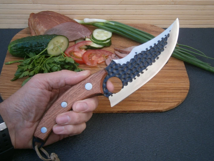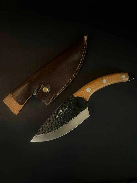 Кухонний багатофункціональний кухарський кований ніж-тяпка 19 см ручної роботи (KMCFCK-11)