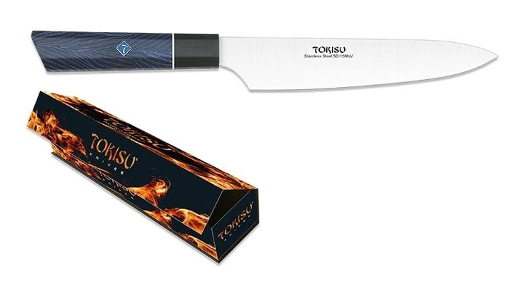Японський кухонний шеф-ніж Сантоку 170 мм Tokisu Black&Blue всадний G10 58 HRc нержавіюча сталь