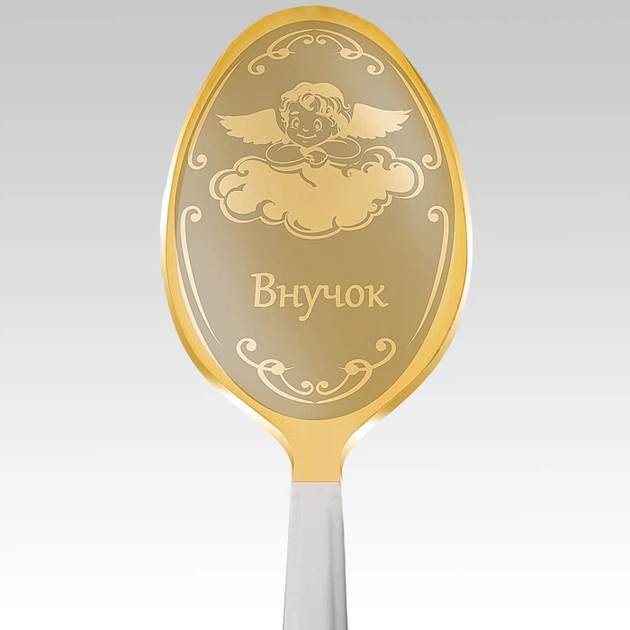 Іменна ложка Ангел Срібний Внучок чайна, нержавійка НЧ252