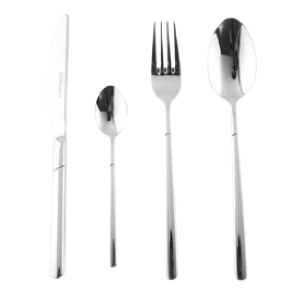 Серія - Lyon, Кількість предметів - 24 шт, Довжина - 23 см, Матеріал - нержавіюча сталь, коробка, виделка столова - 6 шт, ніж столовий - 6 шт, ложка столова - 6 шт, ложка чайна - 6 шт, Колір - сріблястий