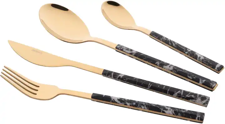 ARDESTO Набір столових приборів Gemini Marmo, 16 приборів, нержавіюча сталь, пластик, золотисто-чорний E-AR1916MBS