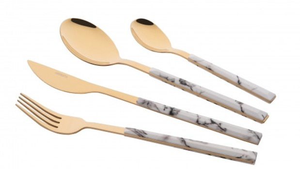 ARDESTO Набір столових приборів Gemini Marmo, 16 приборів, нержавіюча сталь, пластик, золотисто-білий E-AR1916MWS