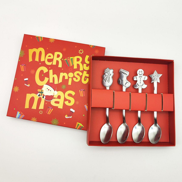 Новорічний подарунковий набір з 4 ложок подарунок столові прибори Honey Fashion Accessories сріблястий (17-1/1)