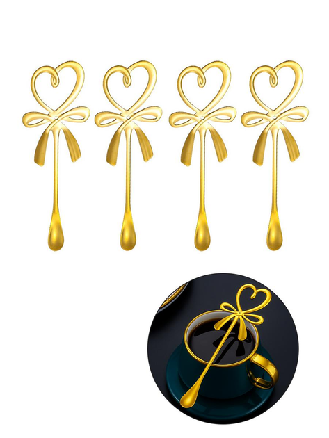 Набір десертних ложечок з довгою ручкою Бантик 4 штуки неіржавна сталь 14х4.6 см Золотиста (CK-174)