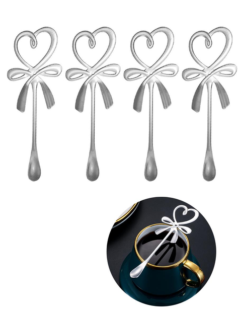 Набір десертних ложечок з довгою ручкою Бантик 4 штуки неіржавна сталь 14х4.6 см Срібляста (CK-175)