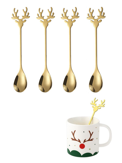 Набір ложок десертних з довгою ручкою Олень 4 штуки неіржавна сталь 14.2х2.4 см Золотистий (CK-172)