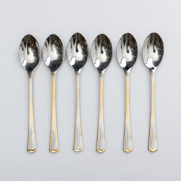 Набір кавових ложок, 6 штук, 12.3 см, сріблясті з золотим оздобленням, з нержавіючої сталі, ложки для кави, кухонне приладдя