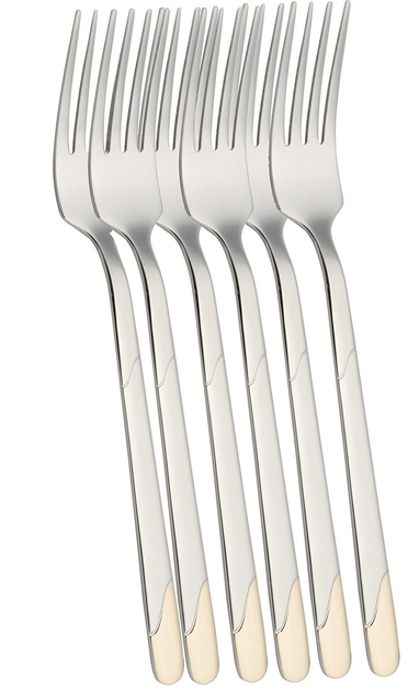Набір десертних виделок, 6 штук, нержавіюча сталь, 15.2 см, срібло із золотим оздобленням, столові прибори, кухонне приладдя
